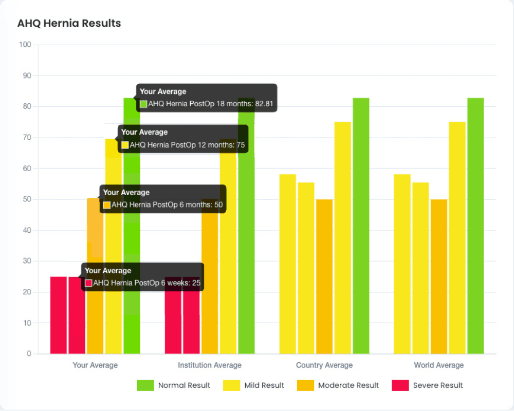 To support surgeons who perform hernia repairs, SurgicalPerformance, through collaboration with expert general surgeons, has incorporated validated and hernia-specific Patient-Reported Outcome Measures (PROMs) that are automatically delivered to patients at the right intervals.
