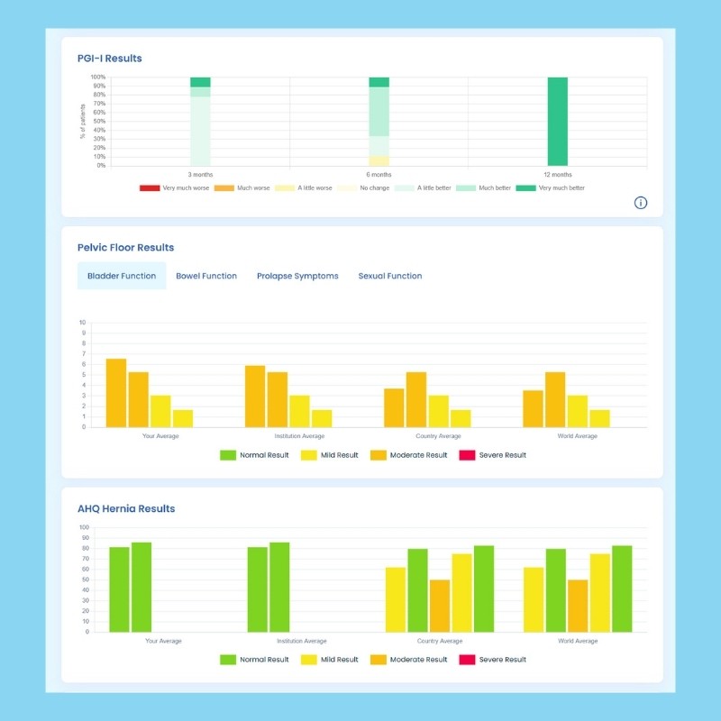 You’ll receive this feedback in an easy-to-read dashboard, helping you understand how patients are doing after surgery, identify those who may need follow-up, and reflect on trends across procedures. PROMS is designed to support your clinical practice, not replace it.